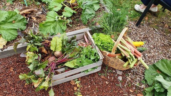 On y est ! c’est l’heure de la récolte faite, au jardin de Kéraudren avec les résidents et animatrices, des légumes frais et bio de saison.